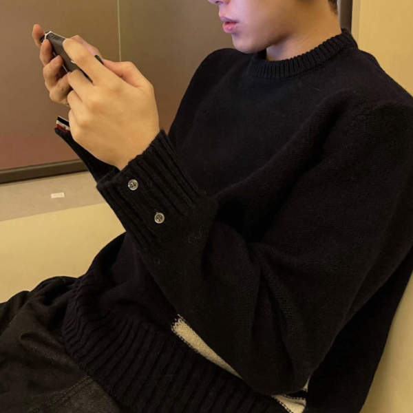 Thom Browne Jersey Stitch Donegal 4-Bar Crew Neck Pullover Navy