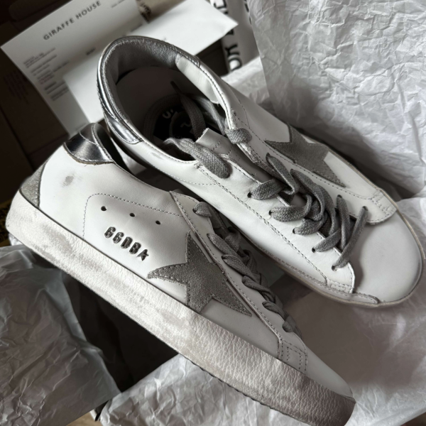 Golden Goose Superstar White Silver Heel Tab Sneakers