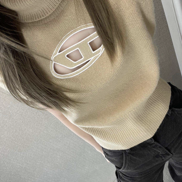 (W) Diesel M-Argaret Jumper Cut-Out Logo Short Sleeve Beige